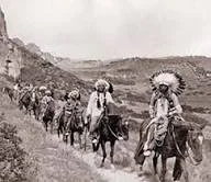 Comanche riding along in single file